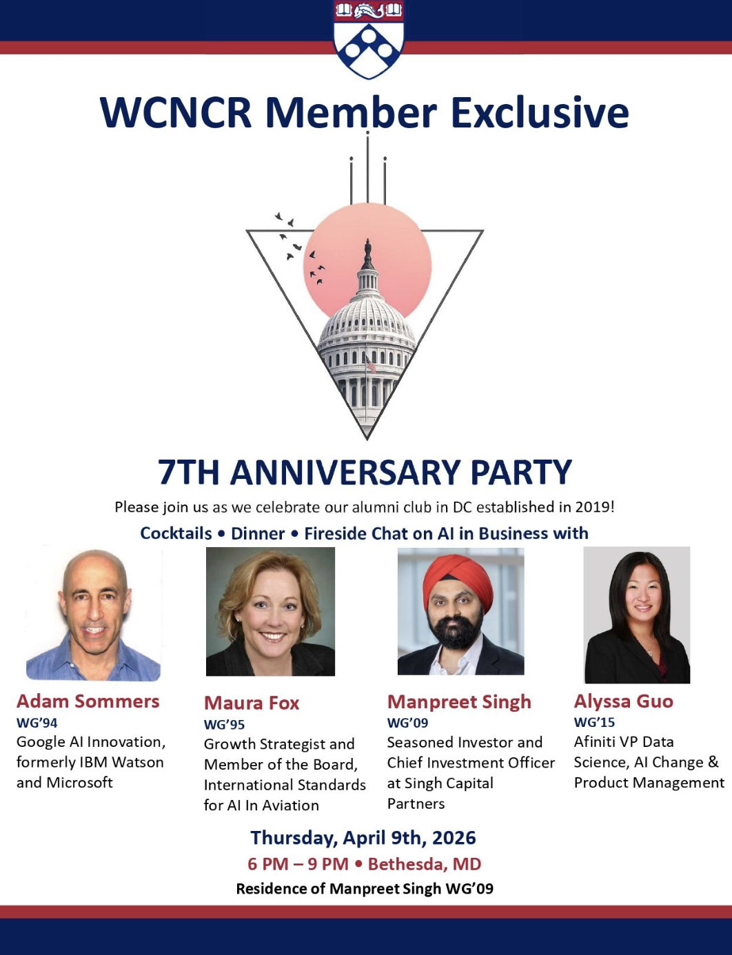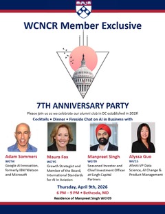 Excited to celebrate 7 incredible years of the Wharton Club of the National Capital Region (WCNCR)! Established in 2019, our DC alumni community continues to grow, connect, and inspire.